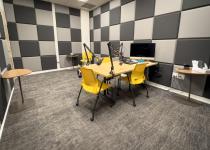 Create professional photos and videos in an acoustic friendly space. Reserve the space.