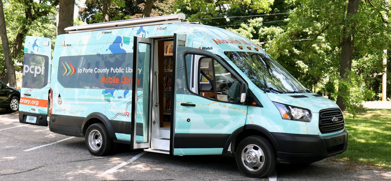 The Mobile Library brings books, movies, music, and more to schools, organizations, and community events throughout La Porte County.